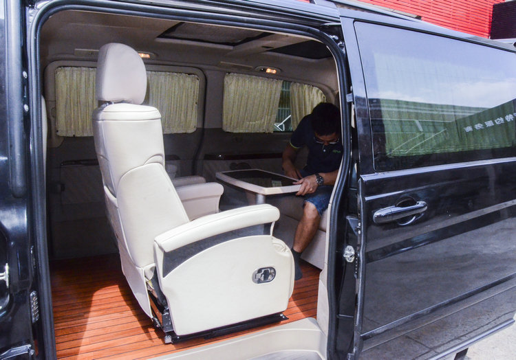 第三排沙发椅:可放倒至180°,做一张简易的床可供做暂时休息之用。