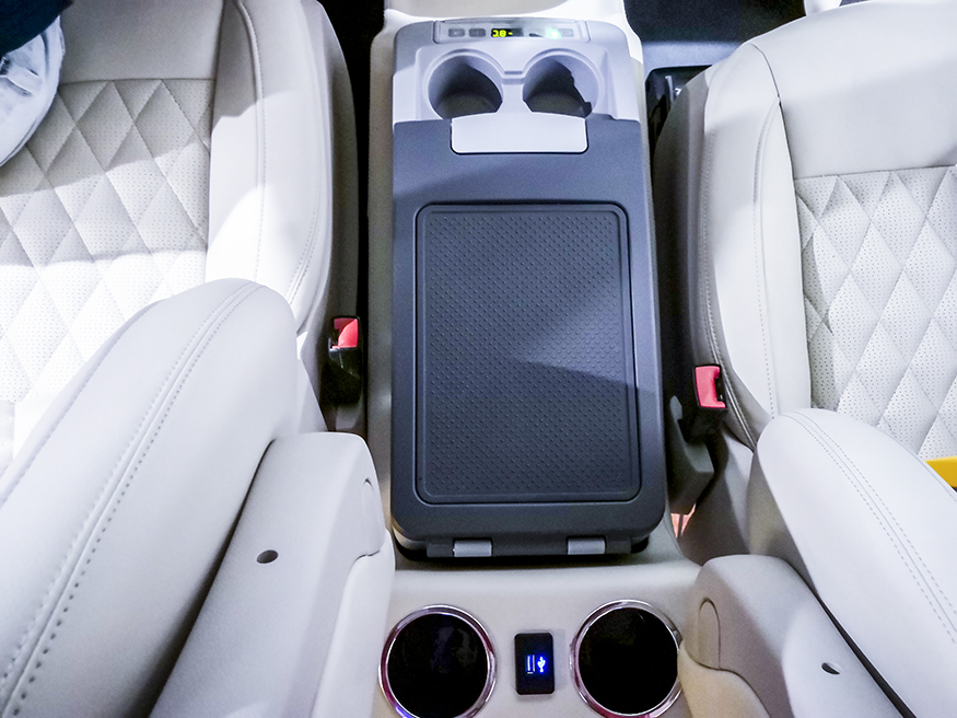 原装扶手箱:可为驾驶者及一二排乘客提供多种便利功能。顶部配备折叠盖板,有扶手及冰箱功能。