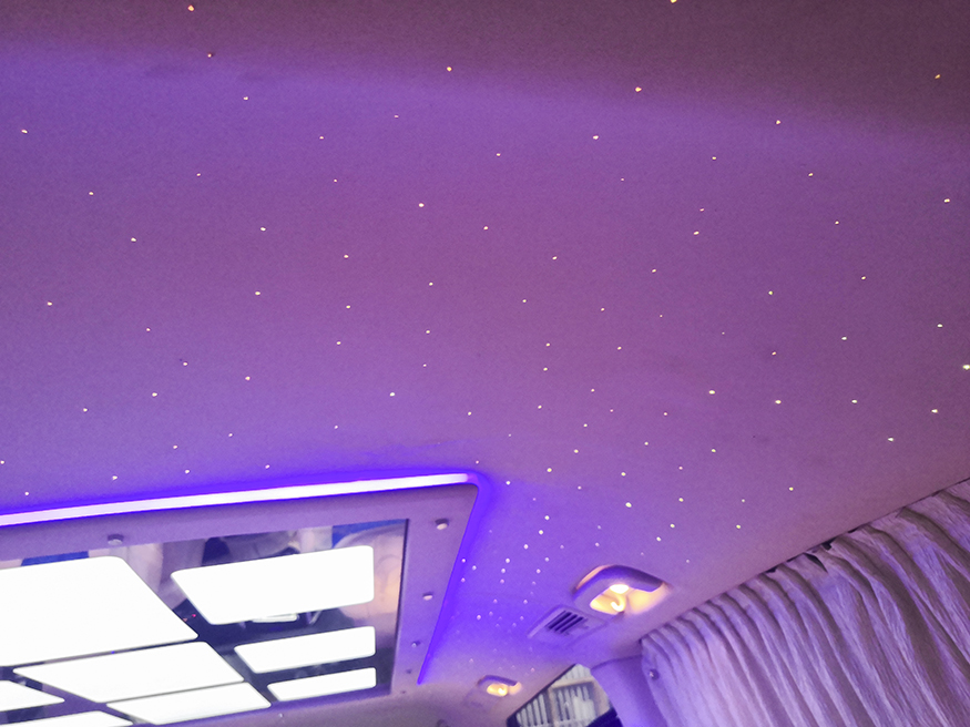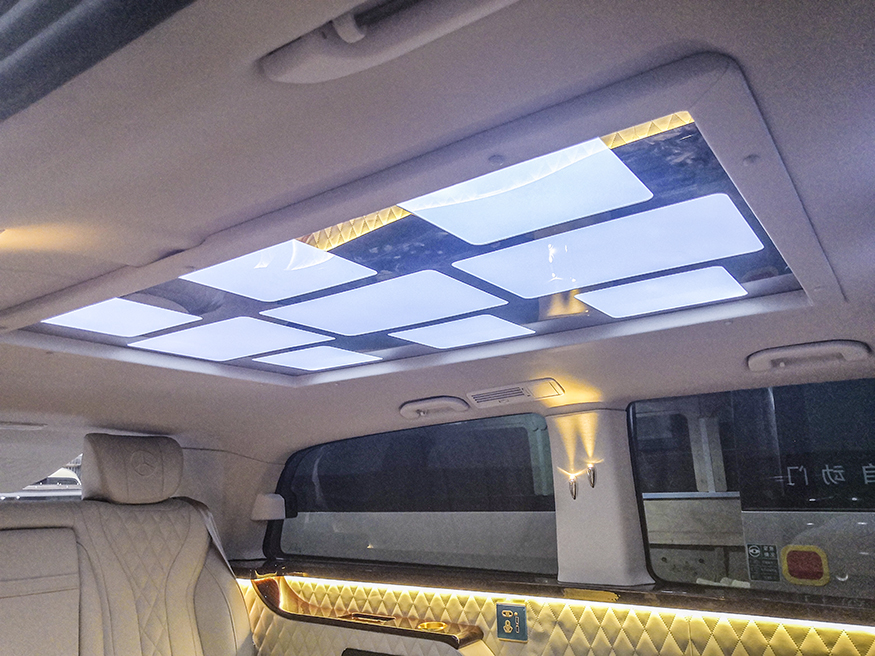 星空顶:由上千条光纤组成,夜晚开启之后足不出户就能在车内欣赏到浩瀚的夜空。