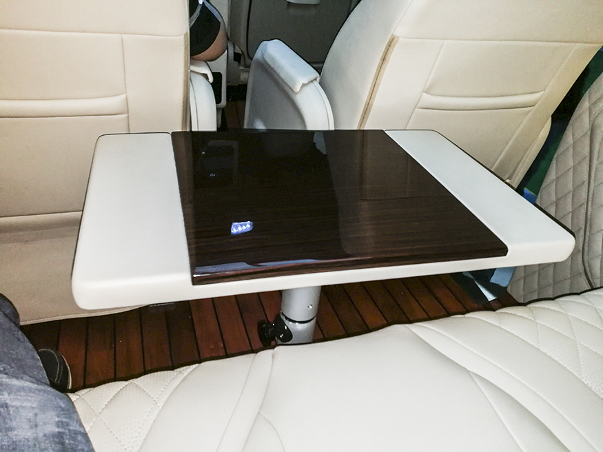 可拆卸商务桌:随时可进行拆卸,搭配中排航空座椅旋转之后,可开小型会议或者旅途娱乐休闲之用。