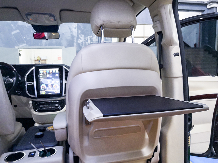 折叠小桌板:表面采用皮革包制,工艺细腻精湛防滑耐磨,方便您商旅多功能用途。