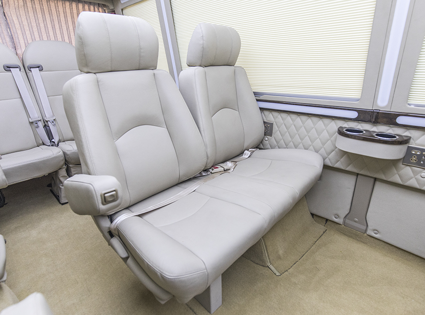 豪华双人座椅:真皮包裹豪华双人座椅,美观、大气便于清理擦拭。