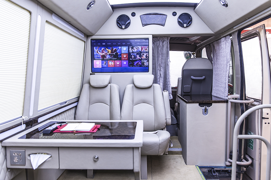 液晶电视:在车内就可以像家里一样欣赏网络节目,让您的旅途不再枯燥乏味(各种尺寸可供选择)。