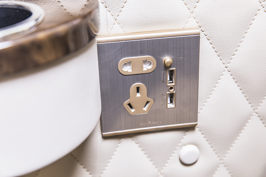豪华座椅:具有包括电动腿托在内的多项调节功能,更集成了加热、通风、按摩、无线手机充电、功能调节触摸屏。让习惯分秒必争的你,偶尔也可以从心所